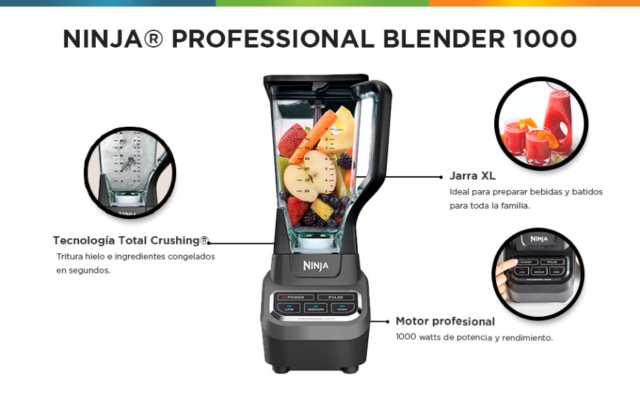 NINJA LICUADORA BL610, 2 LITROS, 1000W, 3 VELOCIDADES, NEGRO/GRIS